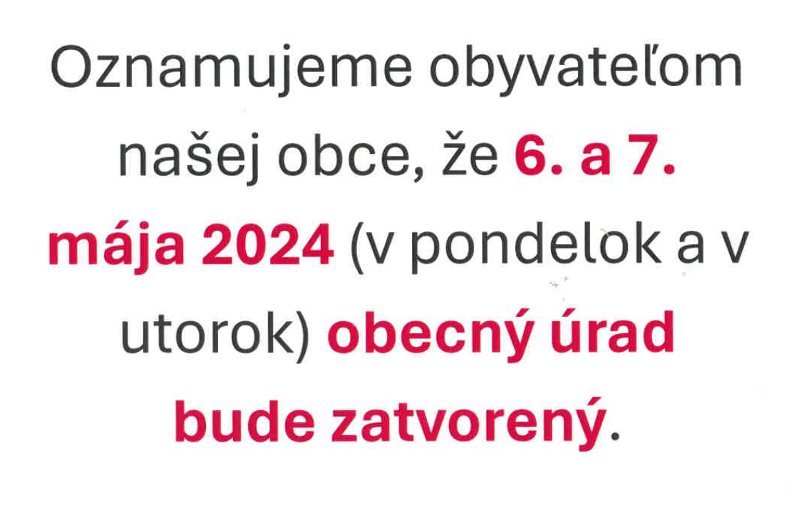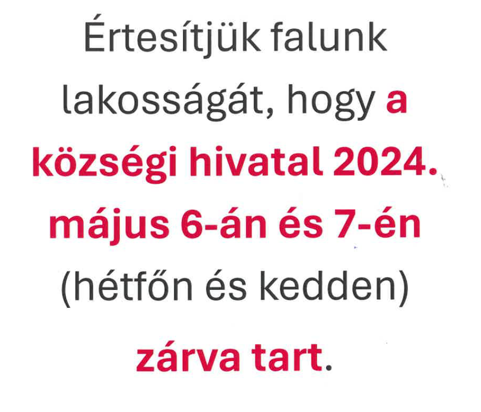 Május 6-án és 7-én a községi hivatal zárva lesz