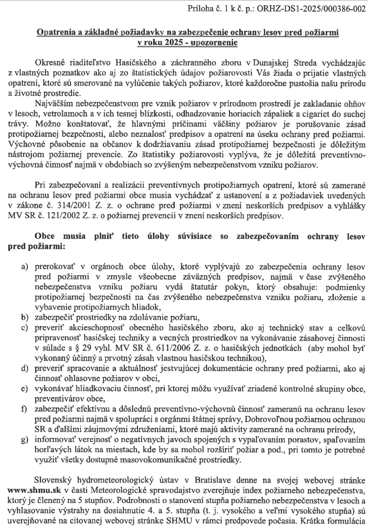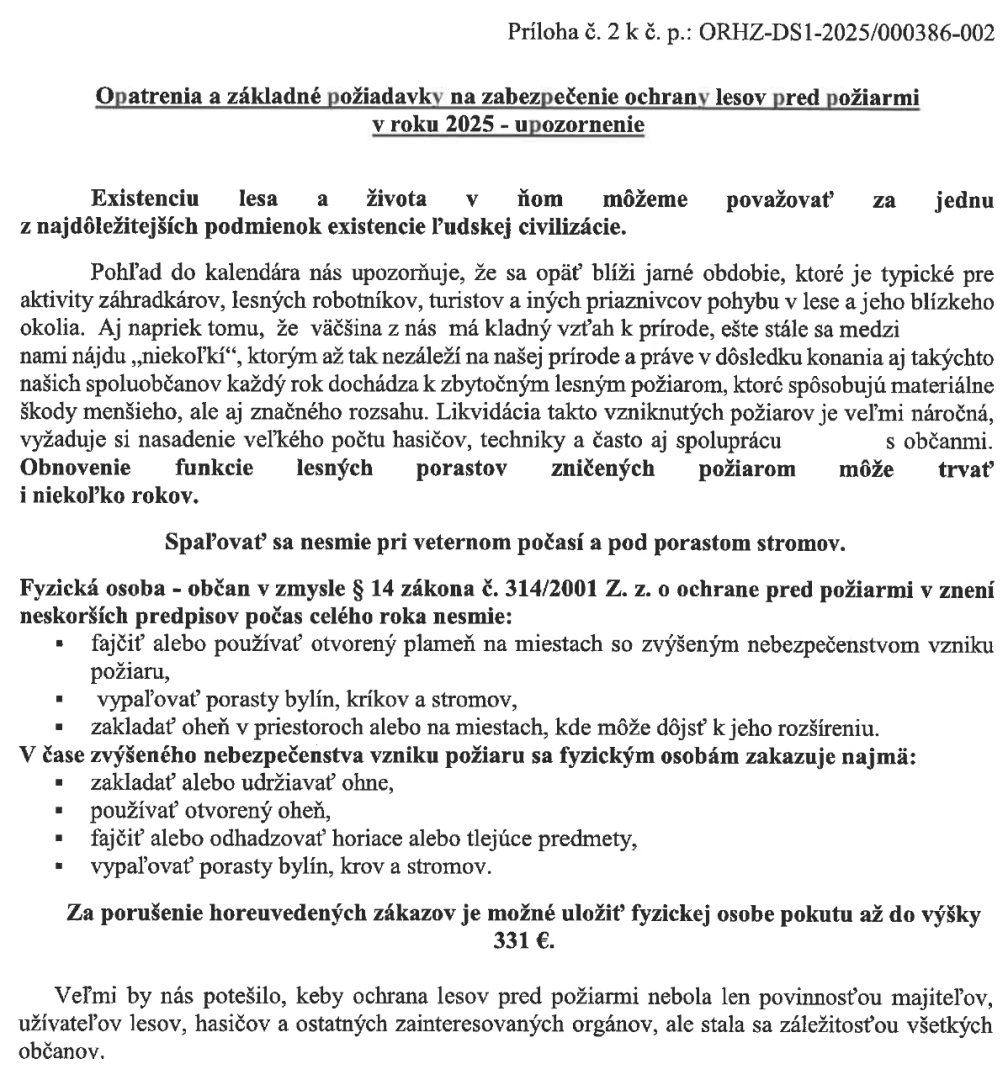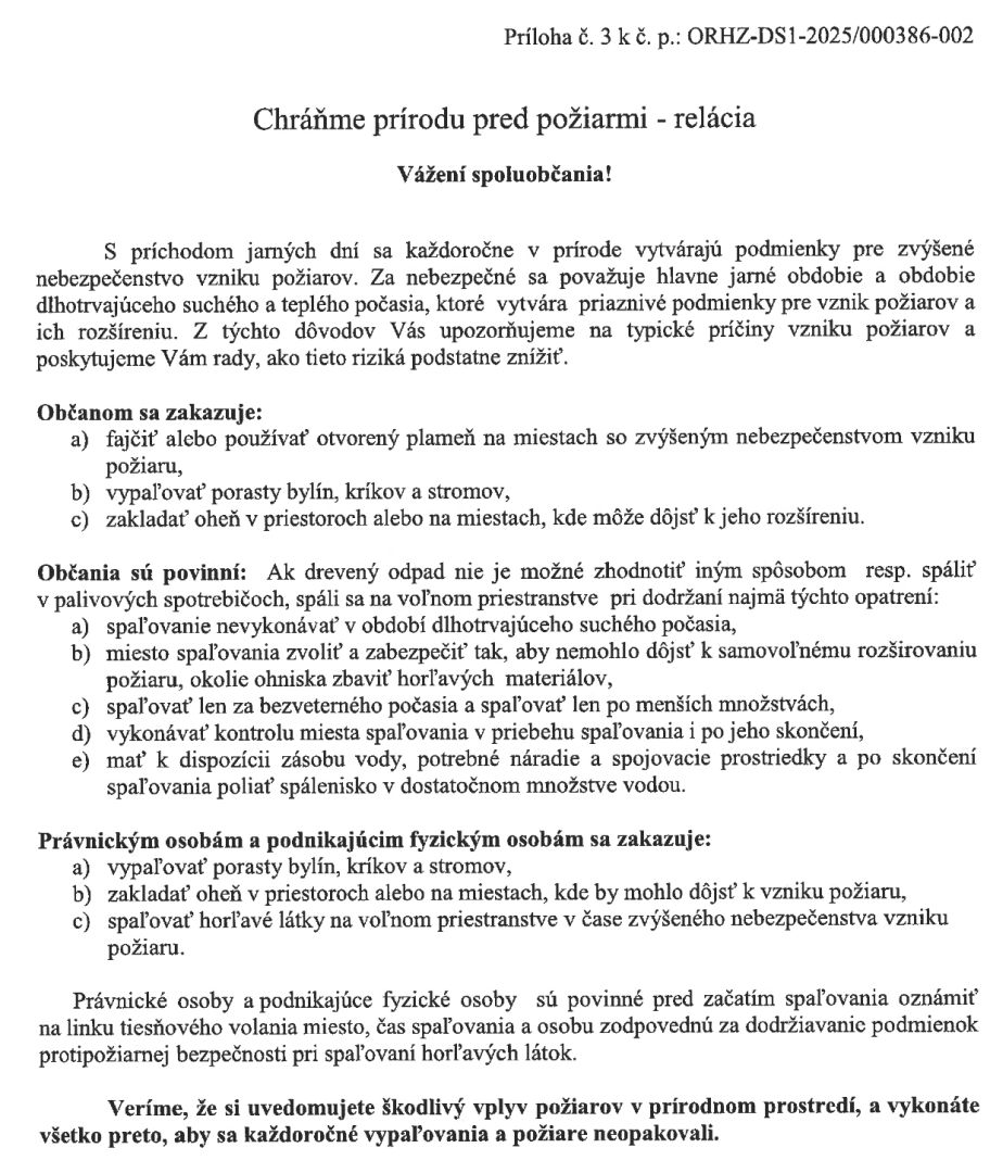 Veríme, že si uvedomujete škodlivý vplyv požiarov v prírodnom prostredí, a vykonáte všetko preto, aby sa každoročné vypaľovania a požiare neopakovali.